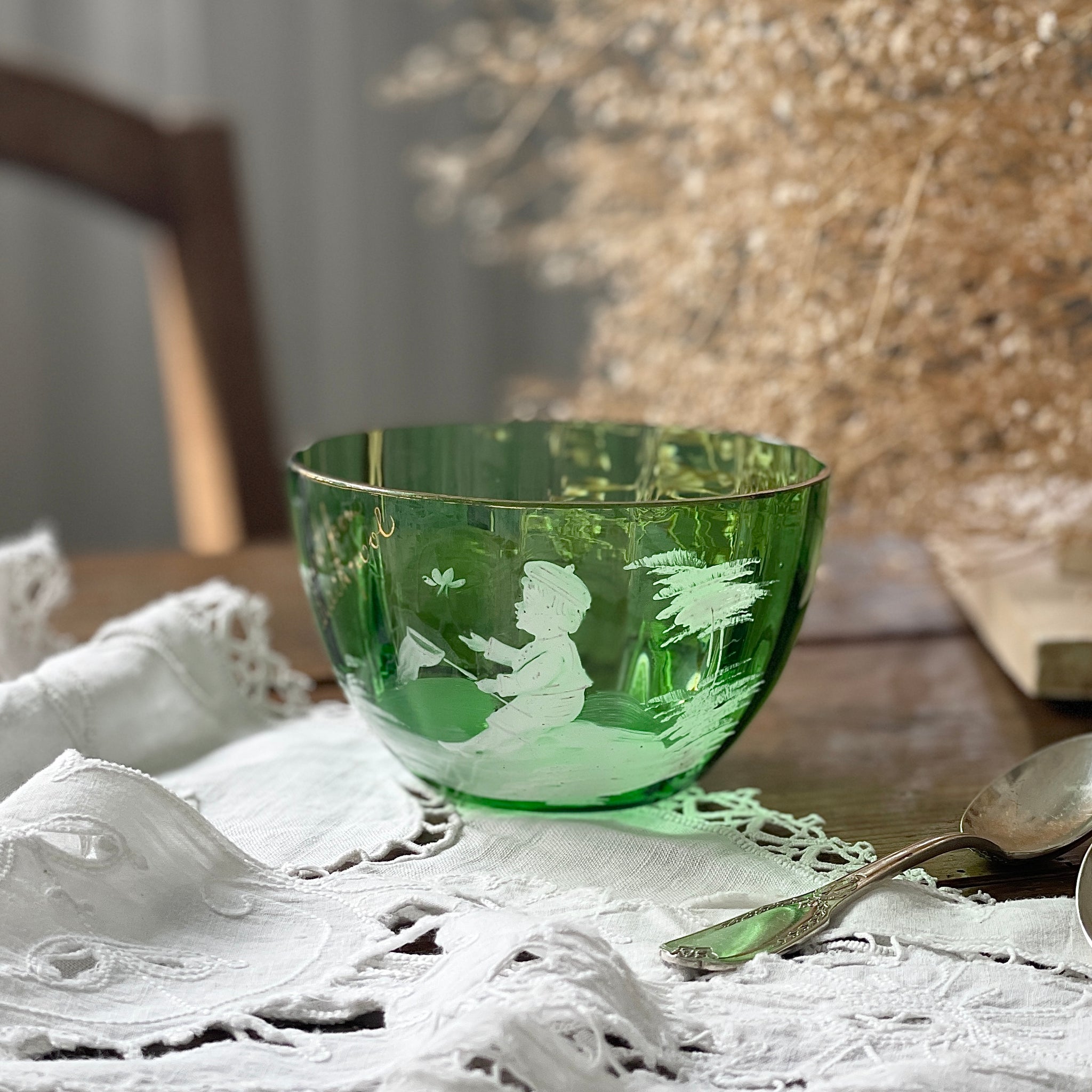 マリー・グレゴリーのグリーンガラスボウル(直径11cm) アンティーク