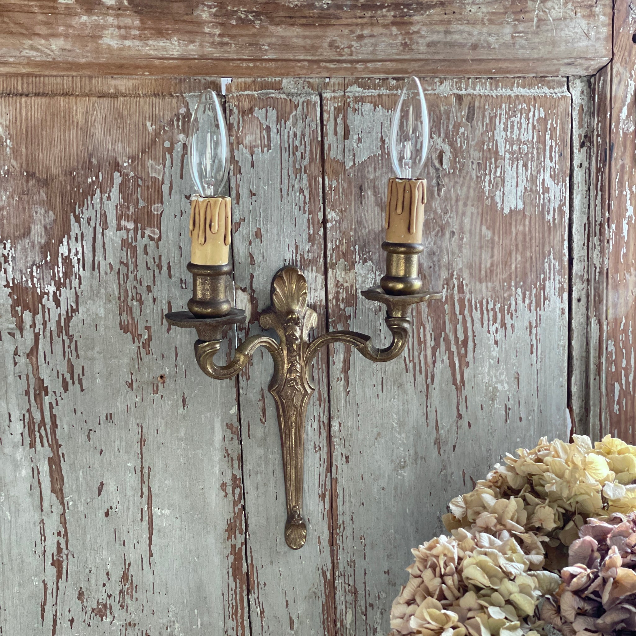キャンドルのような2灯ブラケット(壁付け照明)高さ31.5cm フランスアンティーク